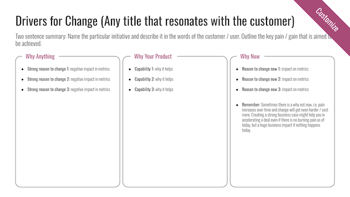 The 3 Whys framework is about equipping your champion to walk into the room with the economic buyer and articulate why they need to act, why your solution is the right one, and why now. If your champion can't answer these three questions clearly and credibly, the deal will stall.