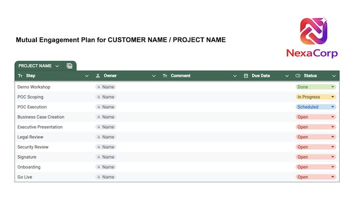 Create a sense of urgency without being pushy: The Mutual Engagement Plan (MEP) keeps deals moving from the First Meeting all the way to signature without losing control of the process along the way. It's the tool that transforms the sales process from something you're doing to the customer into something you're doing together.